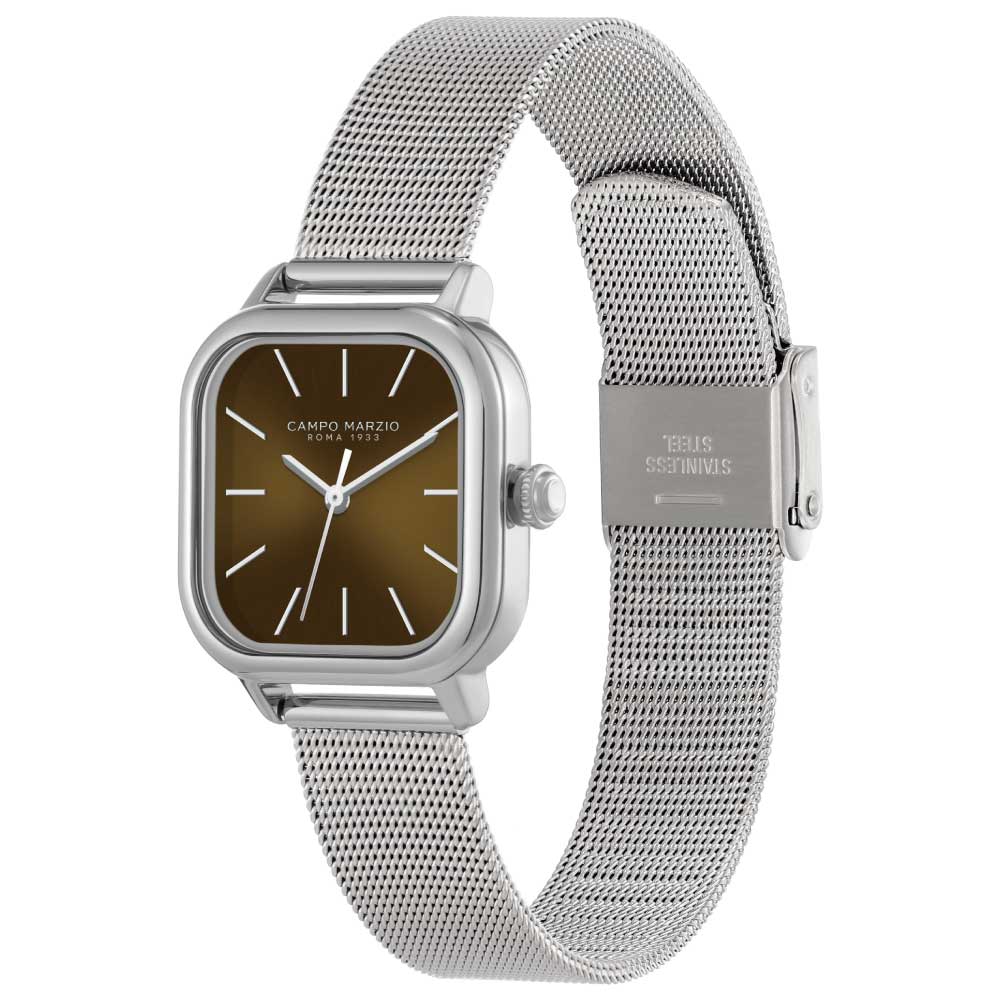 Square Silver Case White Dial Silver Mesh Band CMW0018