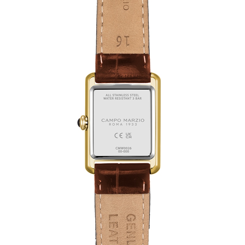 Vintage Tank Light Gold Case White Dial Brown Crocodile Embossed Leather Strap CMW0037