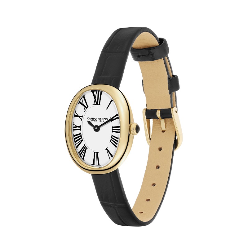 FORLI Oval Gold Case White Dial Black Crocodile Embossed Leather Strap